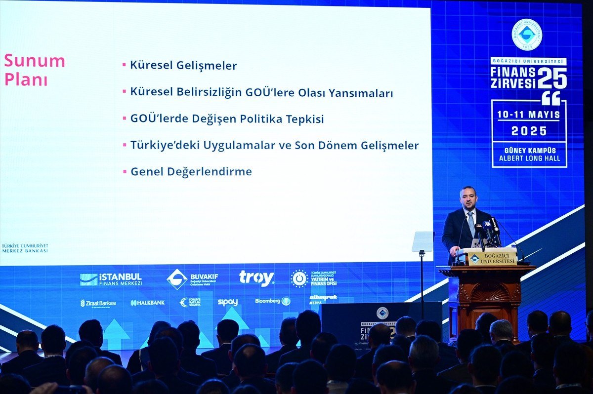 Fatih Karahan, Finans Zirvesi 2025'te "Belirsizlik Çağında Finansal Dönüşüm" temasını işleyen bir konuşma yaptı. Küresel jeopolitik risklerin para politikasına etkisine dikkat çekti ve küresel ticaret politikalarındaki belirsizliklerin arttığını belirtti.
